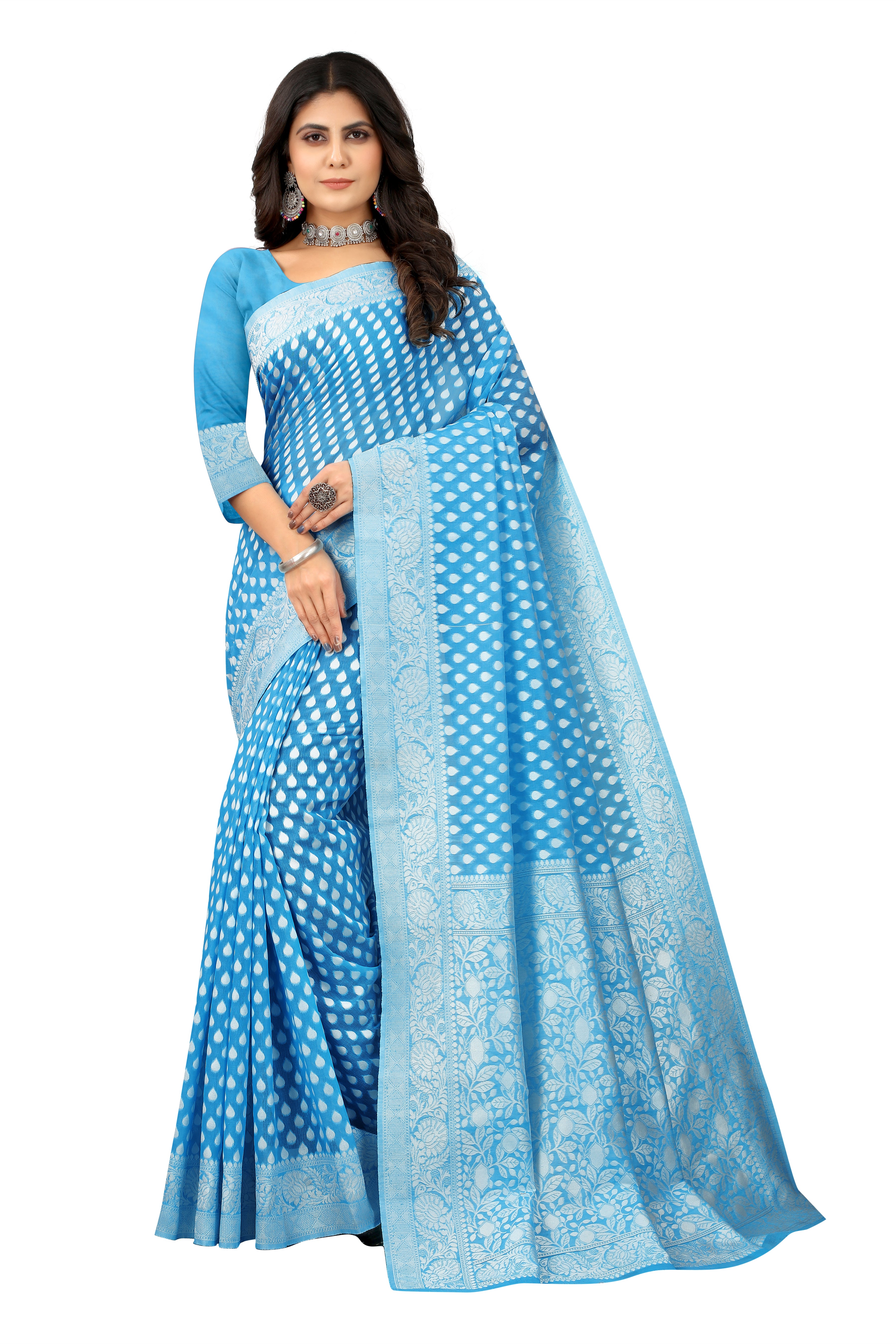 Made from the finest Banarasi Jacquard silk, this saree is a testament to Indian textile craftsmanship. With intricate patterns and designs, this saree is a must-have for any formal occasion. With its luxurious feel and elegant drape, it is sure to make you stand out in any gathering.