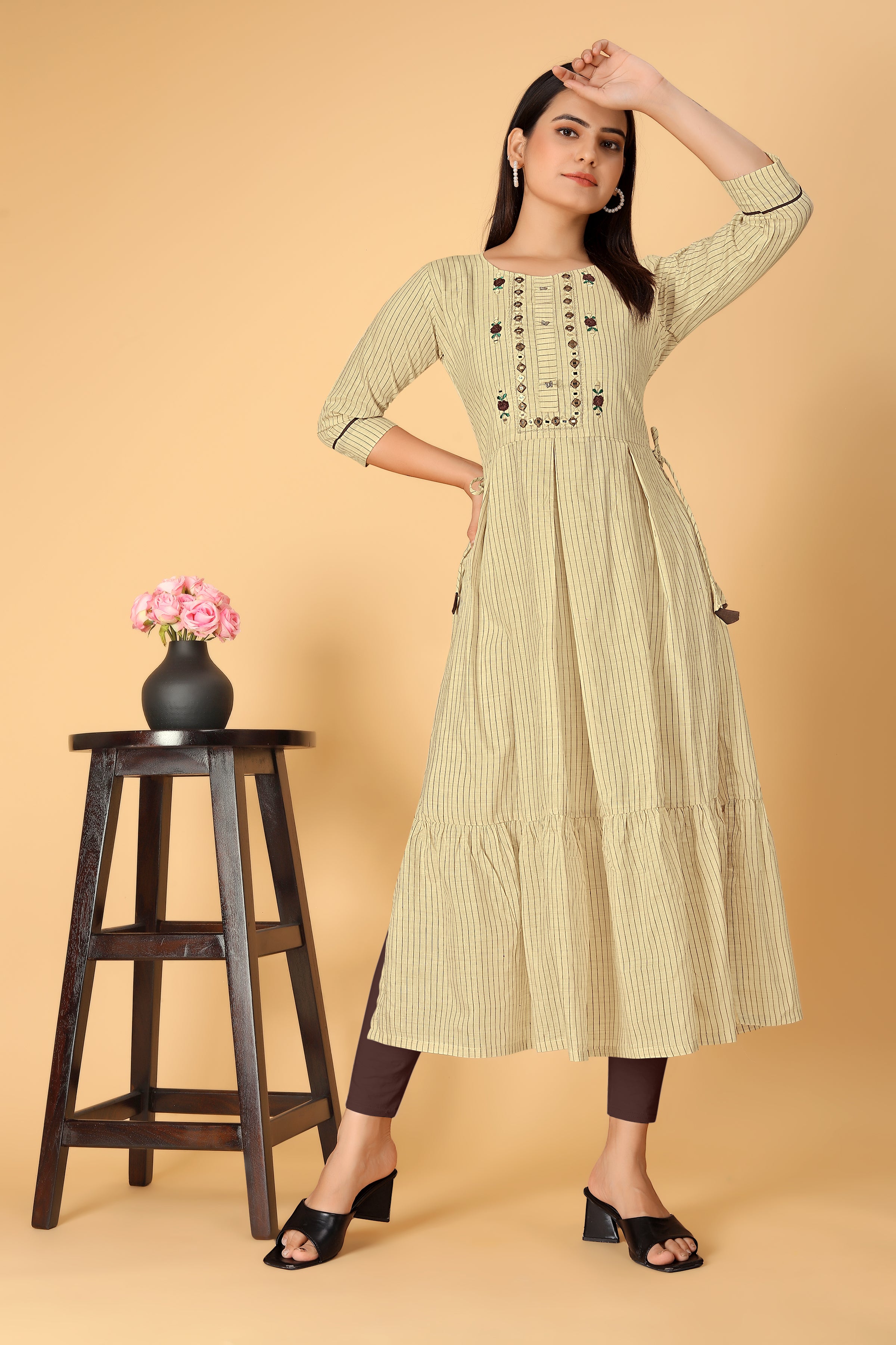 The Vendorvilla Cotton Chanderi Embroidered Kurti For Women
