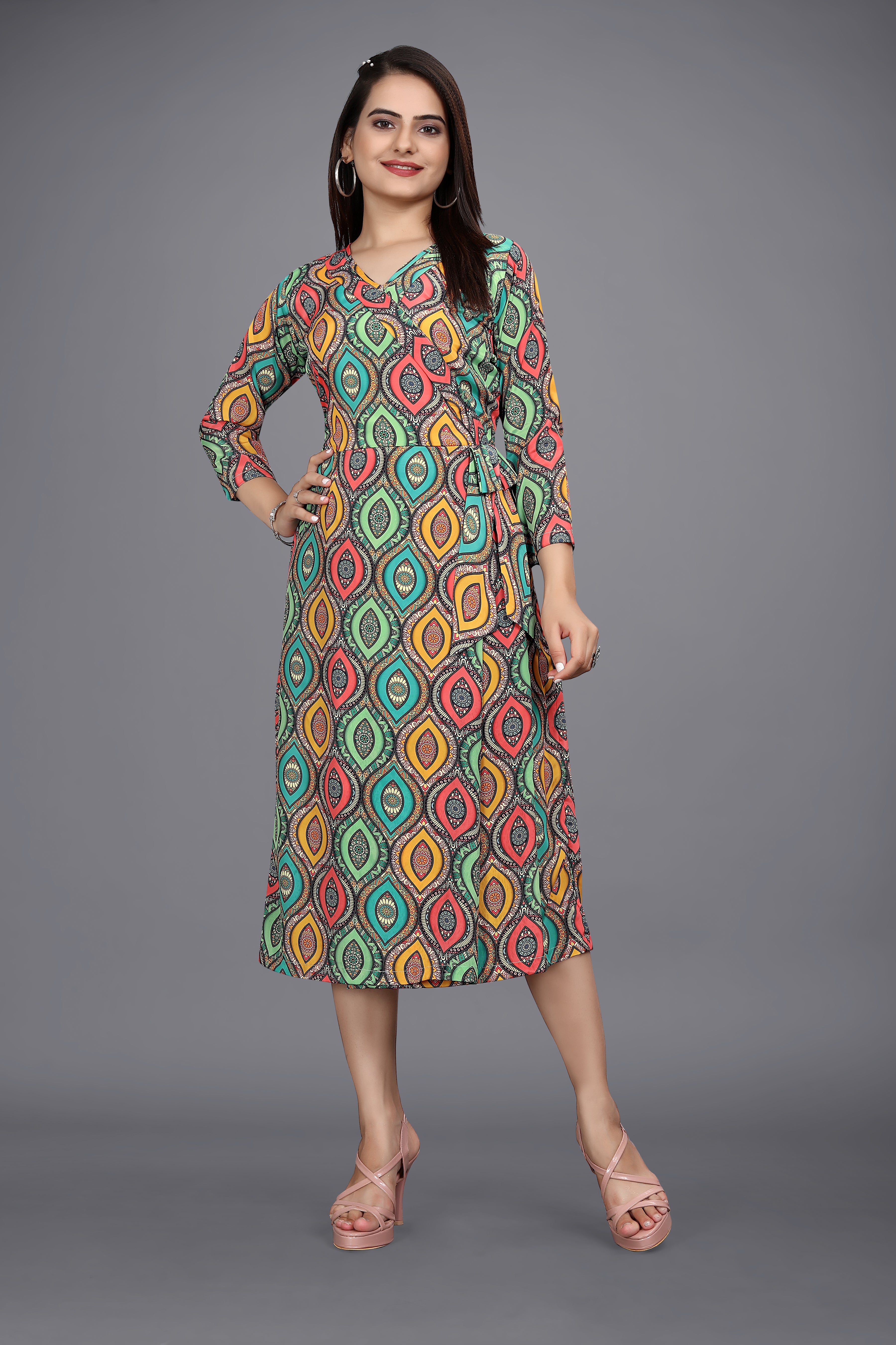 The Vendorvilla New Turkish Crepe Long Calf Length Printed Kurti