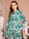 Turquoise Blue Printed Shirt Style Top With Pant Chinon Co-Ord Set