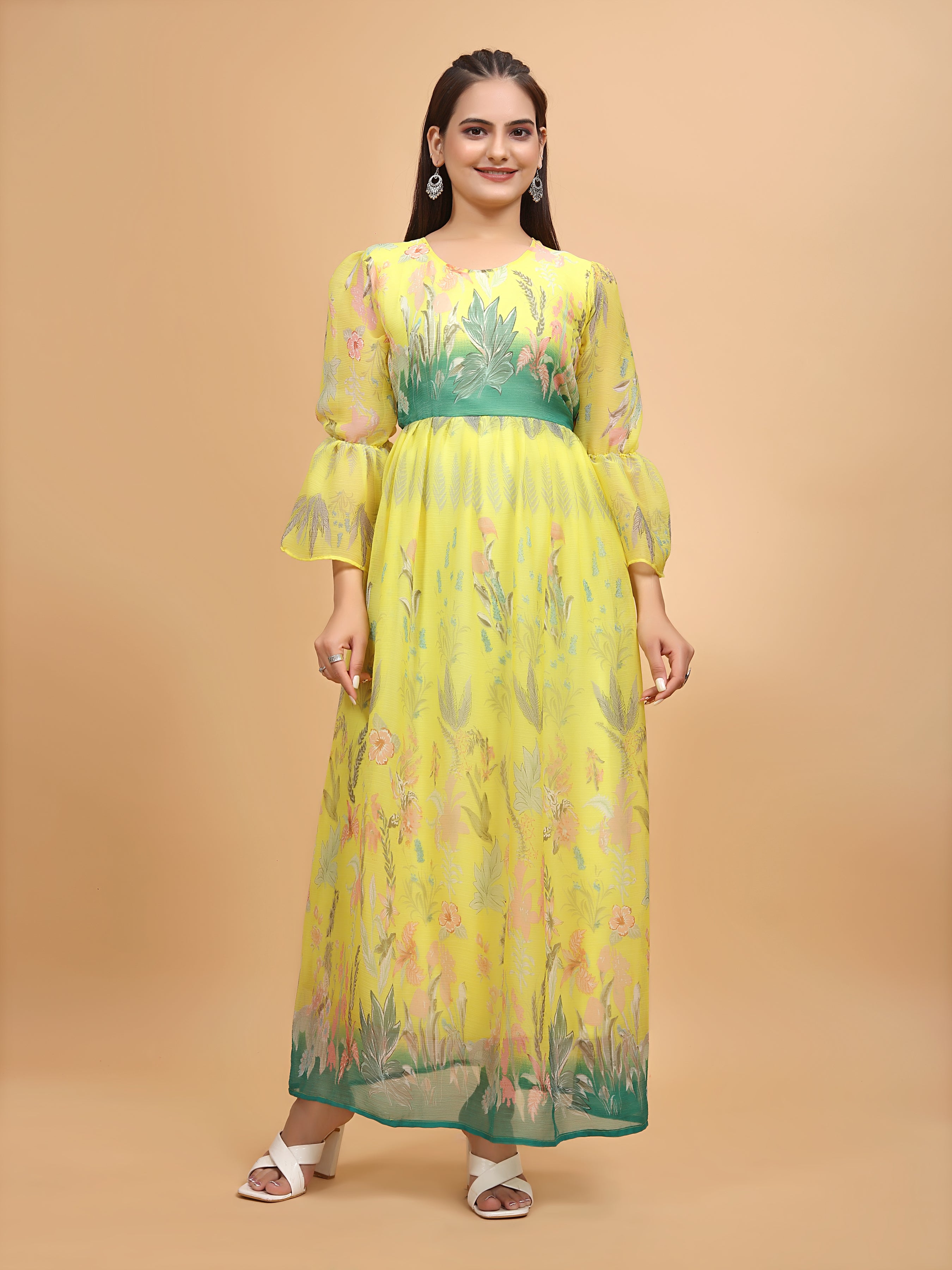 Blooming Elegance: Floral Printed Maxi Dress in Luxuriously Soft Chiffon