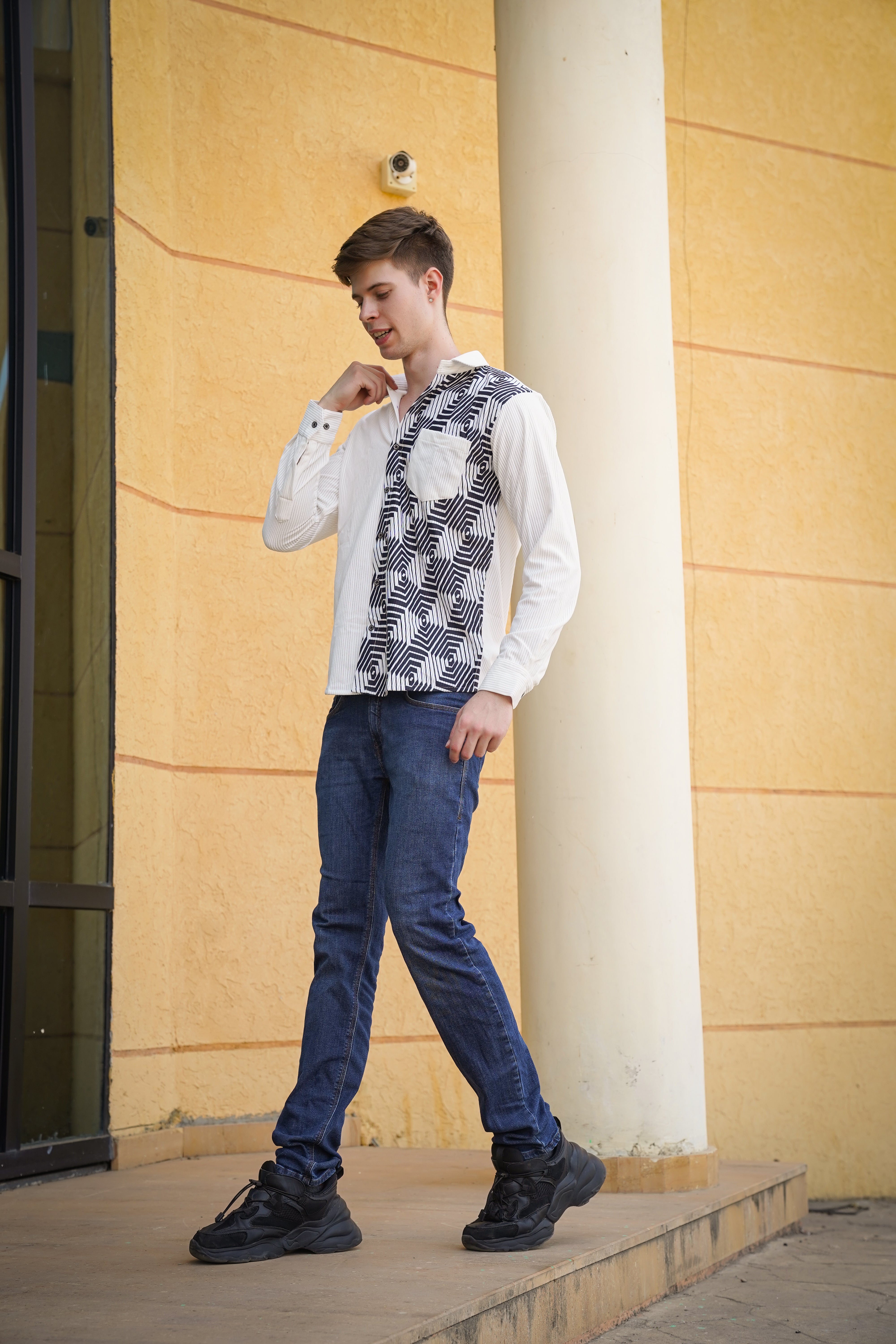 • Reinvent your casual style with this Black & White Illusion print casual shirt from HIGHFY.