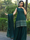 Green Color Embroidered Georgette Sleeveless Sharara 3 Piece Set