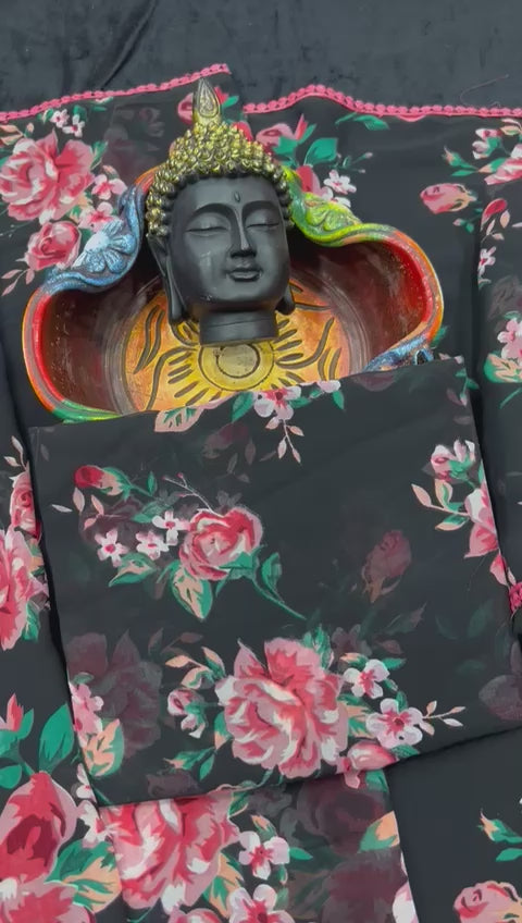 A "Pure Georgette Printed Ready-to-Wear Saree" is a type of saree made from pure georgette fabric and adorned with printed designs. Georgette is a lightweight, sheer fabric known for its flowy drape and subtle texture. The term "ready-to-wear" indicates that the saree comes pre-stitched or pre-pleated, making it convenient and easy to wear without the need for extensive draping.