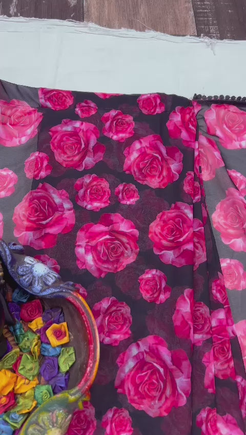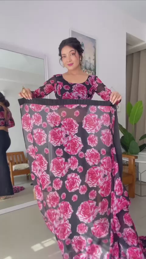 Pure Georgette Floral Printed Ready To Wear Saree