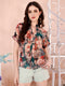 NameLight Brown Floral Printed Georgette Mandarin Collar Shirt