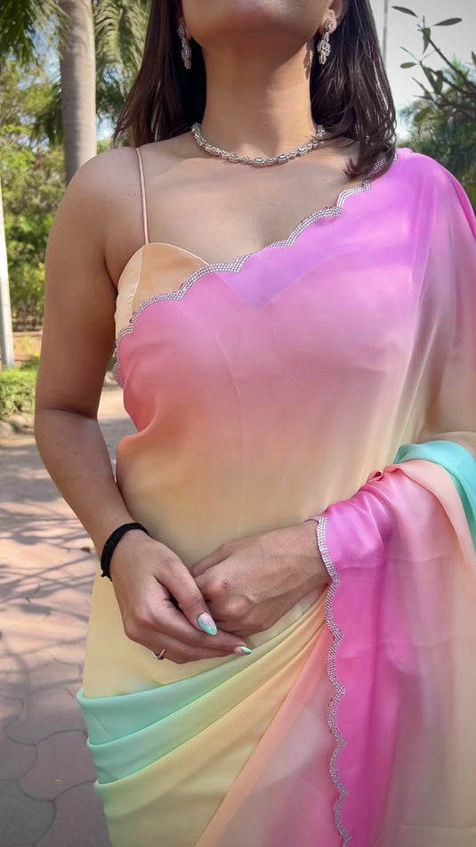 NameExclusive Pure Satin Georgette Ombre Print Saree