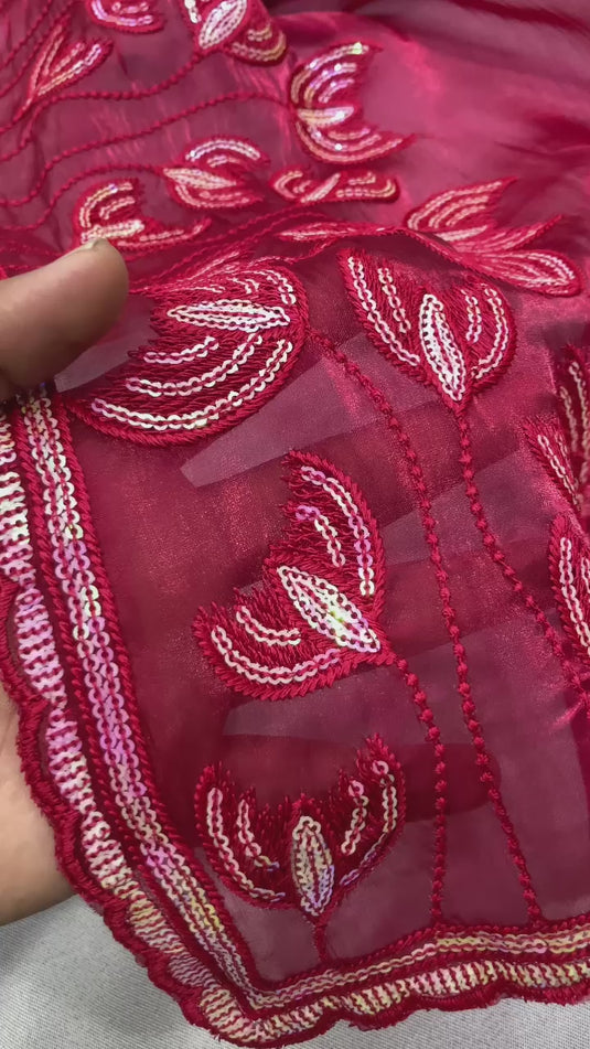 Looking for someone for this same colour beautiful  Saree for the wedding on premium Soft Zimmy choo fabric with C-pallu All Over Embroidery -sequins Work &  Cutwork Border with  Plian blouse piece.