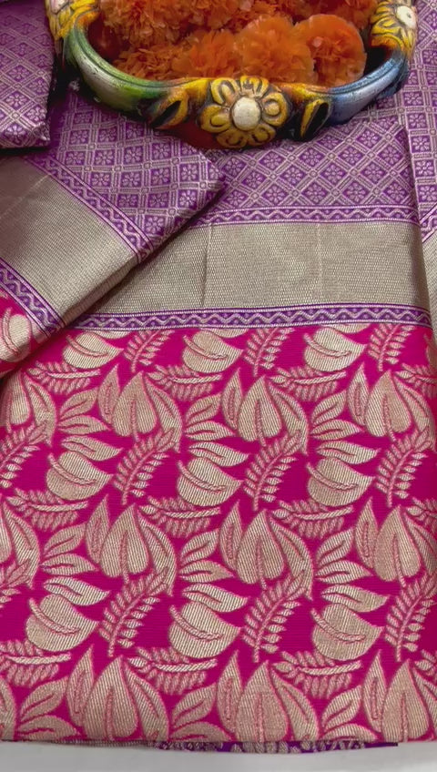 The combination of the beautiful rich pallu and jacquard work creates a mesmerizing visual effect, elevating the saree to a work of art. Whether worn for special occasions, cultural celebrations, or festive gatherings, this saree is sure to make a statement and leave a lasting impression with its exquisite craftsmanship and timeless appeal.