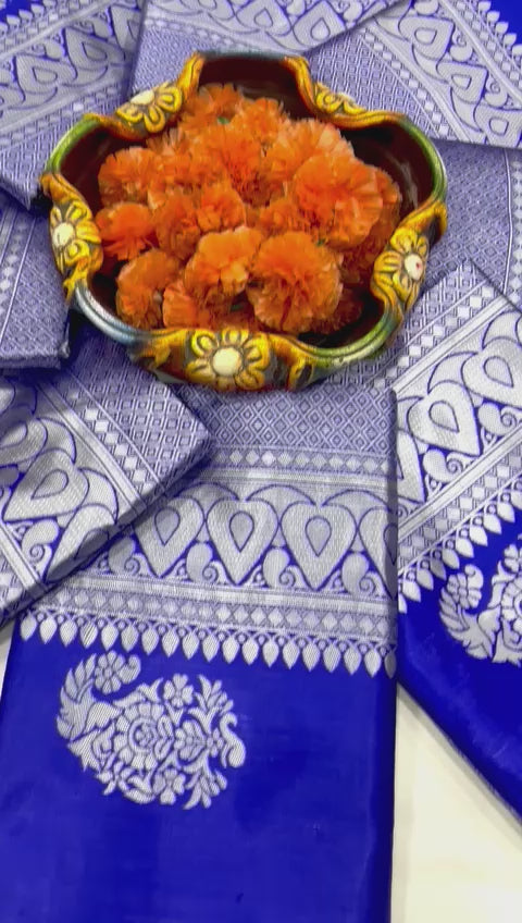 This saree features a luxurious pallu, intricately woven with fine threads of silk, satin, or other high-quality materials, creating a rich and opulent border that drapes gracefully over the shoulder. The pallu often showcases elaborate designs, motifs, or patterns, adding a touch of regal charm to the overall ensemble.