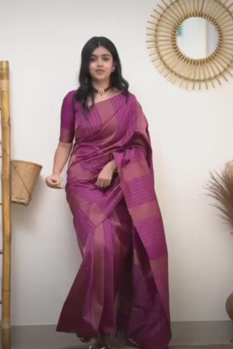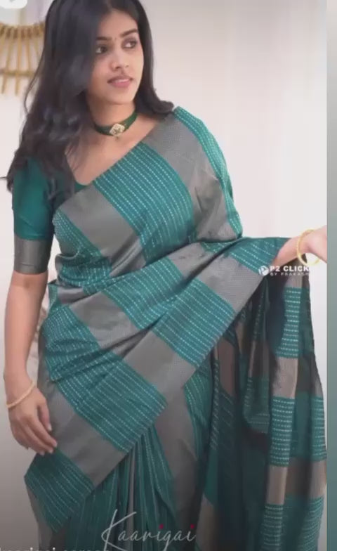 The combination of the beautiful rich pallu and jacquard work creates a mesmerizing visual effect, elevating the saree to a work of art. Whether worn for special occasions, cultural celebrations, or festive gatherings, this saree is sure to make a statement and leave a lasting impression with its exquisite craftsmanship and timeless appeal.