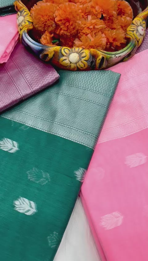 The combination of the beautiful rich pallu and jacquard work creates a mesmerizing visual effect, elevating the saree to a work of art. Whether worn for special occasions, cultural celebrations, or festive gatherings, this saree is sure to make a statement and leave a lasting impression with its exquisite craftsmanship and timeless appeal.