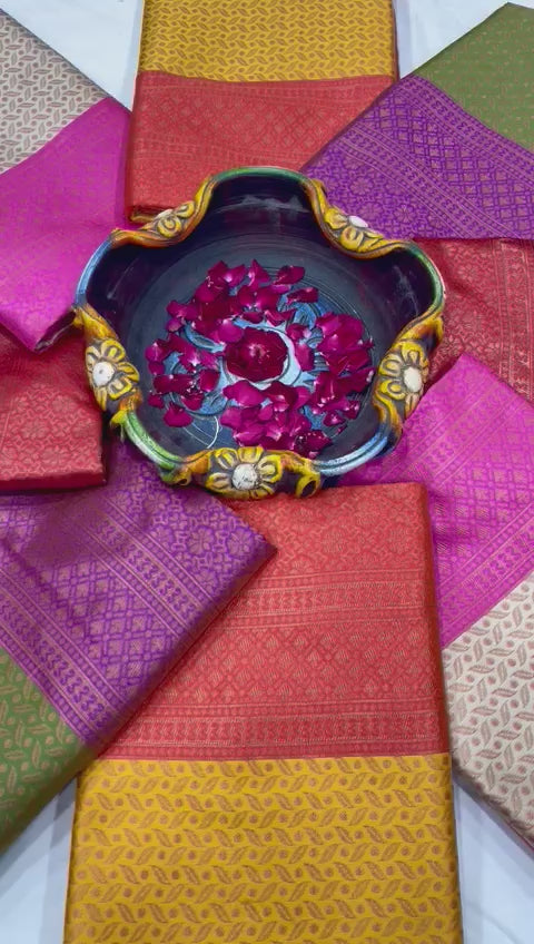 The combination of the beautiful rich pallu and jacquard work creates a mesmerizing visual effect, elevating the saree to a work of art. Whether worn for special occasions, cultural celebrations, or festive gatherings, this saree is sure to make a statement and leave a lasting impression with its exquisite craftsmanship and timeless appeal.