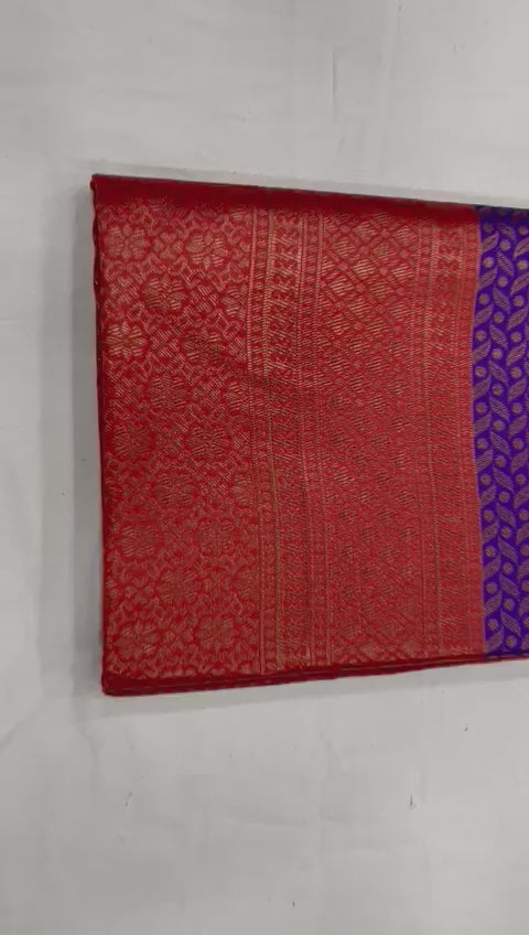 Additionally, the saree boasts intricate jacquard work all over its body. Jacquard weaving is a technique that allows for complex designs to be woven directly into the fabric, resulting in stunning patterns and textures. The jacquard work on this saree is likely to include intricate floral motifs, geometric patterns, or traditional motifs inspired by nature, culture, or heritage.