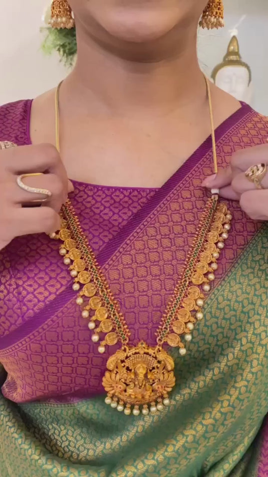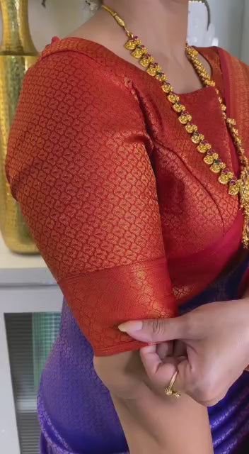 This saree features a luxurious pallu, intricately woven with fine threads of silk, satin, or other high-quality materials, creating a rich and opulent border that drapes gracefully over the shoulder. The pallu often showcases elaborate designs, motifs, or patterns, adding a touch of regal charm to the overall ensemble.