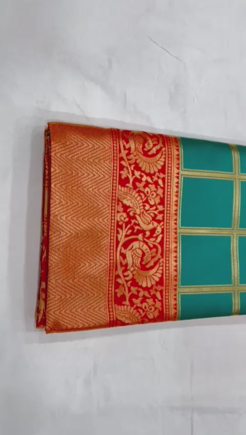 Additionally, the saree boasts intricate jacquard work all over its body. Jacquard weaving is a technique that allows for complex designs to be woven directly into the fabric, resulting in stunning patterns and textures. The jacquard work on this saree is likely to include intricate floral motifs, geometric patterns, or traditional motifs inspired by nature, culture, or heritage.