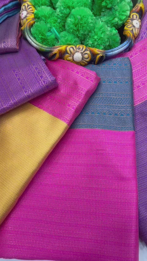 The combination of the beautiful rich pallu and jacquard work creates a mesmerizing visual effect, elevating the saree to a work of art. Whether worn for special occasions, cultural celebrations, or festive gatherings, this saree is sure to make a statement and leave a lasting impression with its exquisite craftsmanship and timeless appeal.