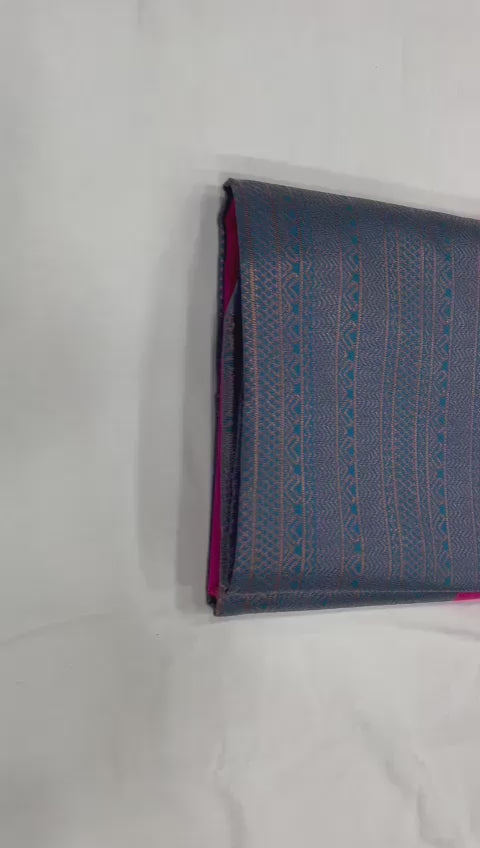 This saree features a luxurious pallu, intricately woven with fine threads of silk, satin, or other high-quality materials, creating a rich and opulent border that drapes gracefully over the shoulder. The pallu often showcases elaborate designs, motifs, or patterns, adding a touch of regal charm to the overall ensemble.